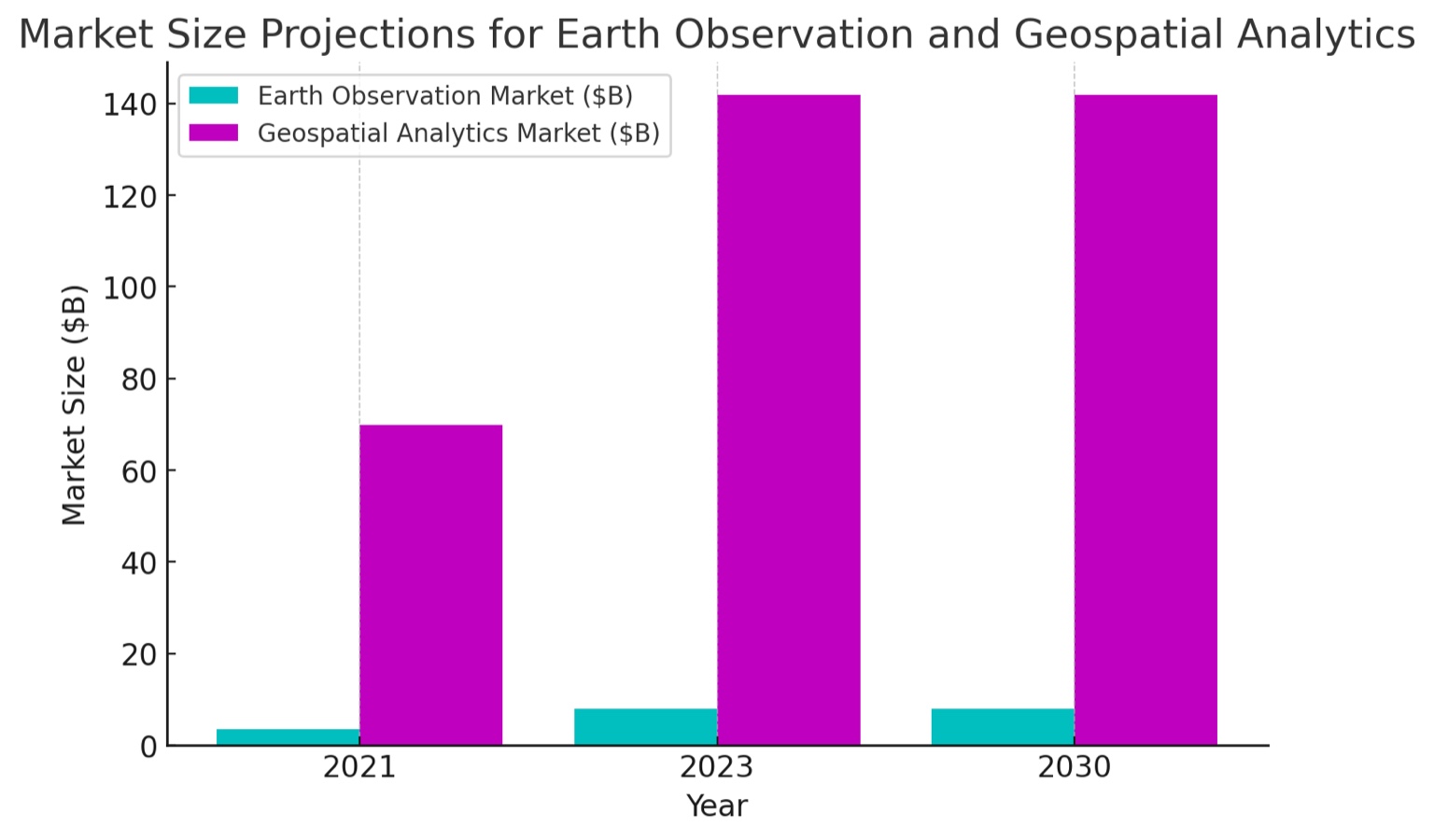 * The **broader geospatial data analytics sector** could **reach the tens of billions (> $100B) by 2030**.\
